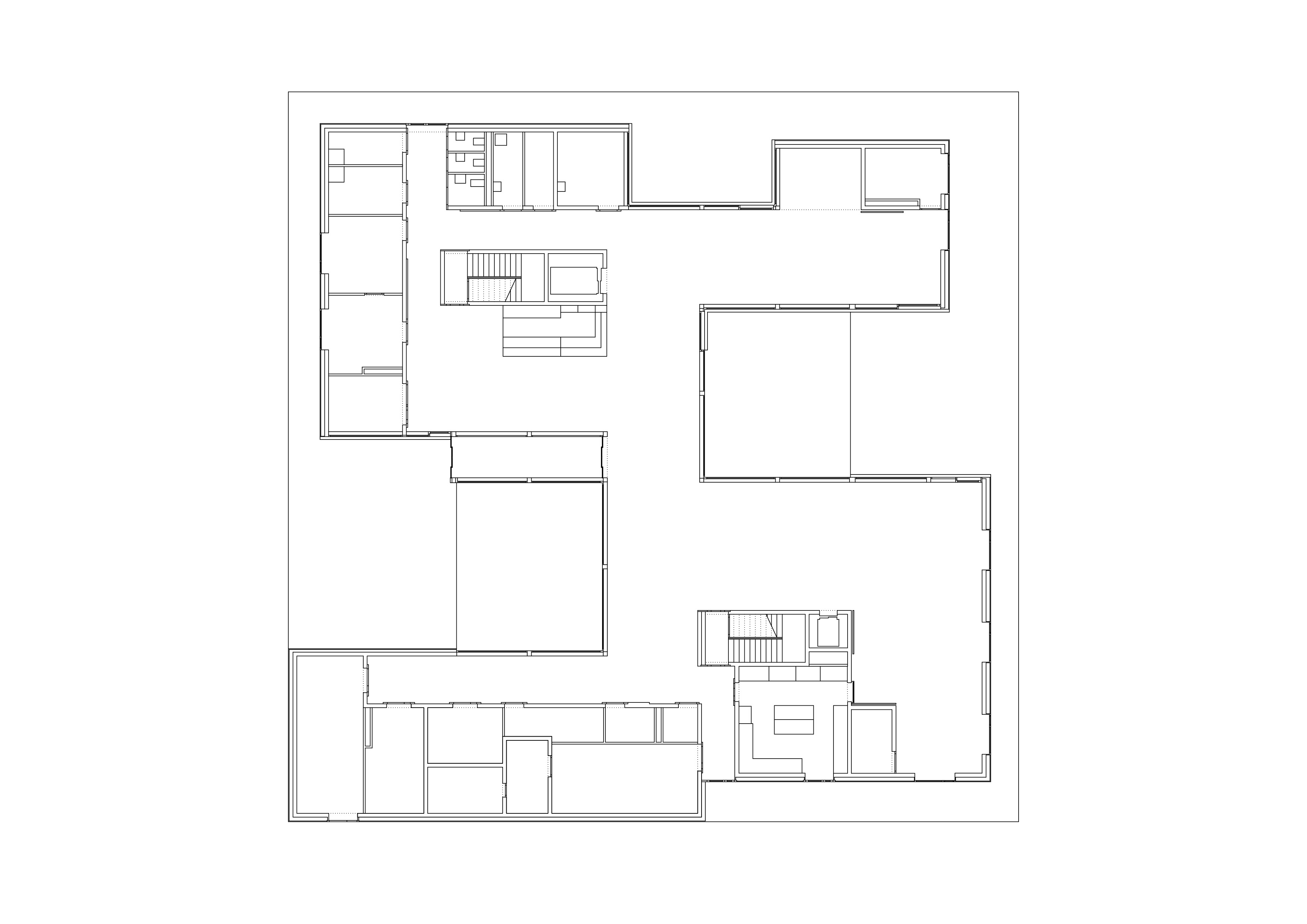 La morphologie du bâtiment révèle son organisation intérieure, simple et limpide. Le rez de chaussée reçoit les espaces communs d’accueil, d’animation, de séjour et salle à manger, organisés en plan libre et fluide autour des cours patio ouvertes sur le jardin. L’étage reçoit les deux unités de douze lits. Les chambres s’orientent sur les quatre façades alors que les espaces communs d’étage s’ouvrent sur les patios, bénéficiant des vues sur les montagnes alentours, tout en évitant la vue directe sur le voisinage proche. Baignés de lumière naturelle, les espaces de circulation incitent à la déambulation.