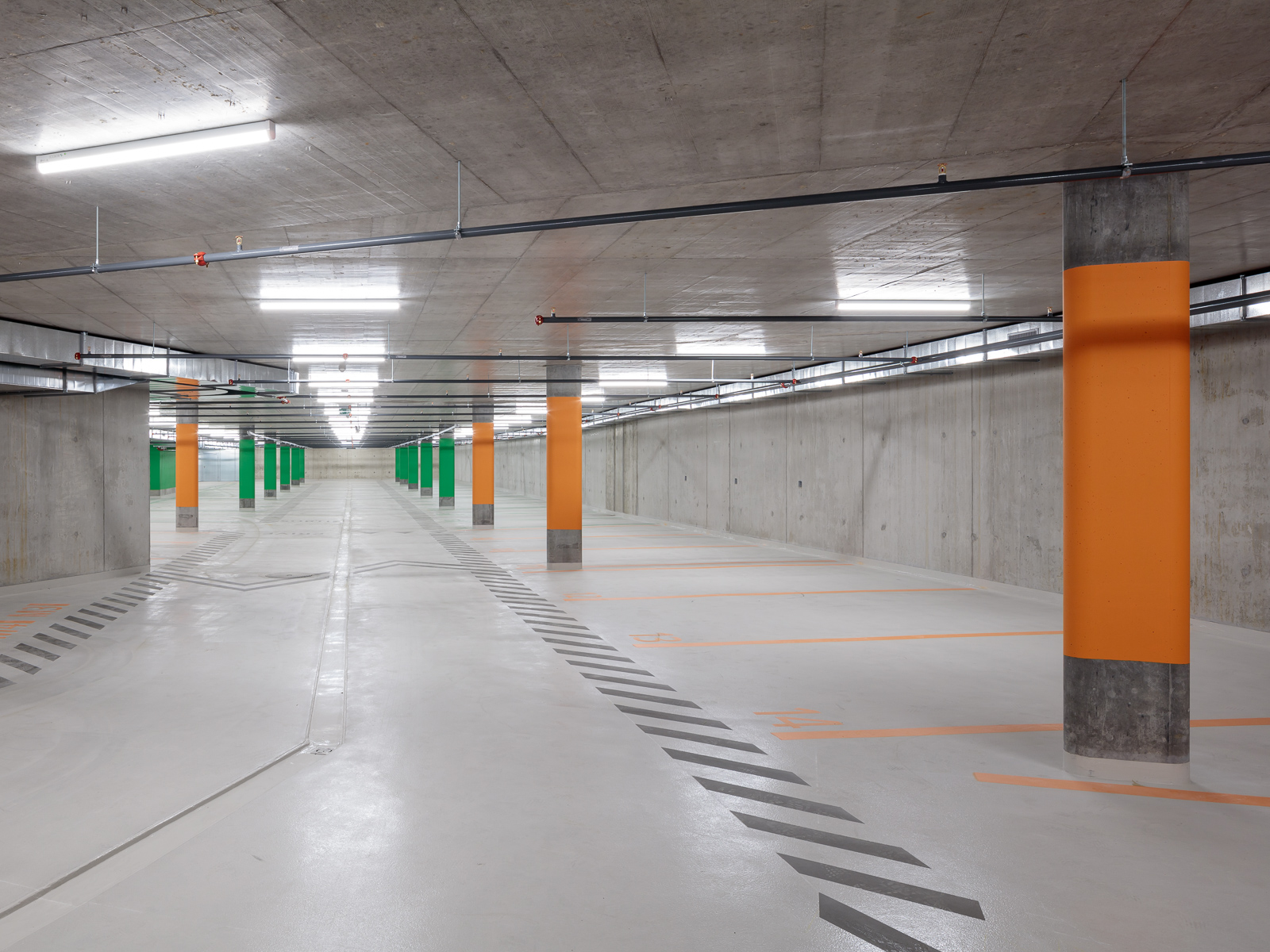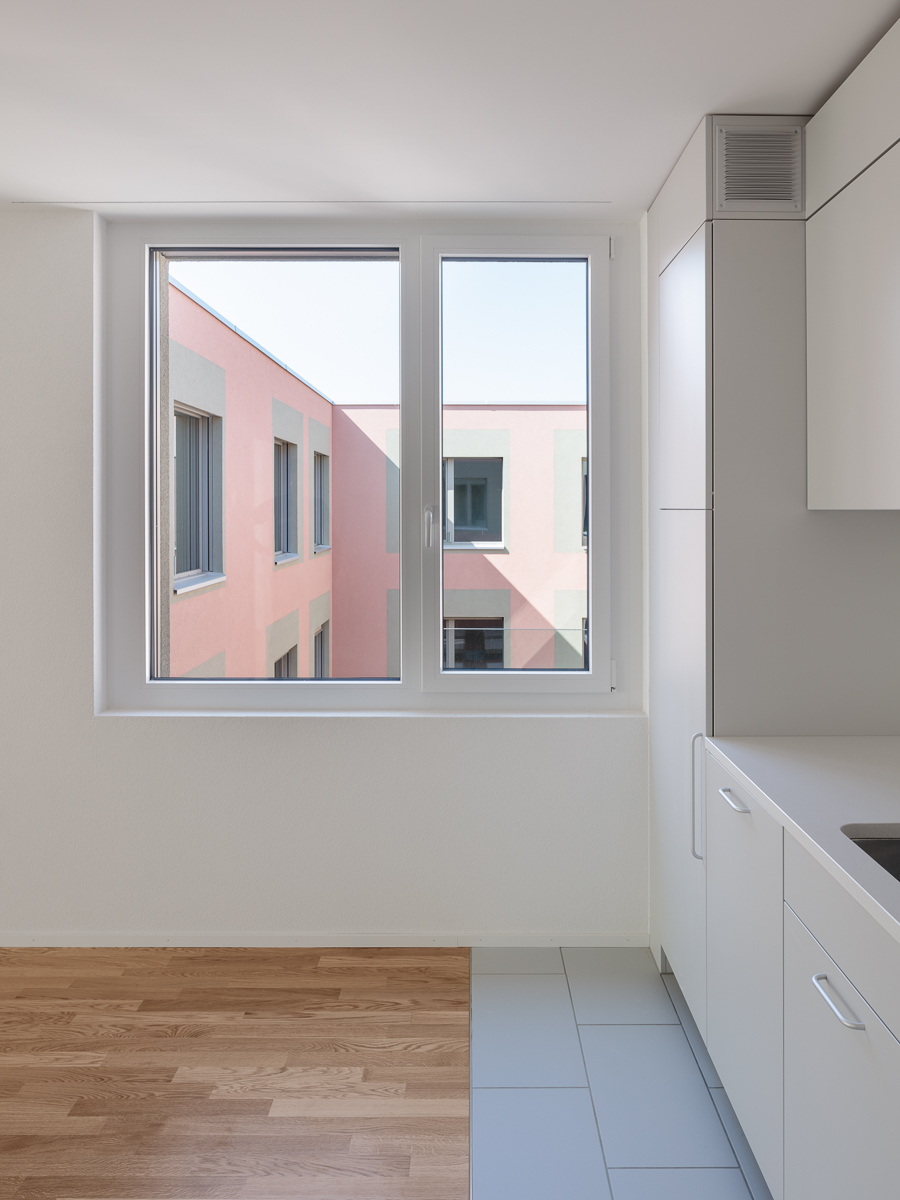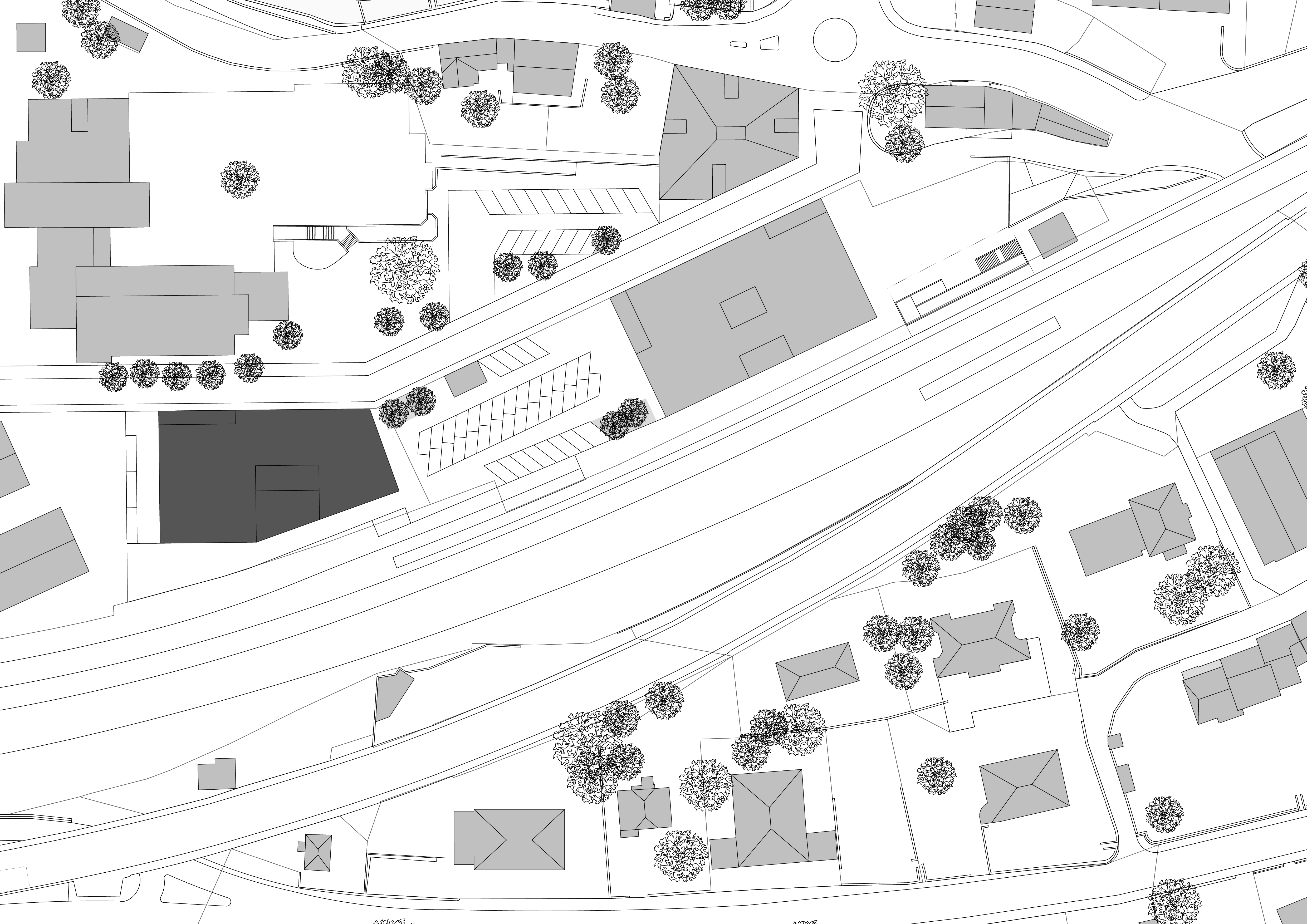 Installé le long des voies ferrées, le bâtiment bénéficie de deux orientations principales : au sud, une vue privilégiée sur le lac Léman, et au nord le panorama du Lavaux, ainsi qu’un ancrage sur la place de la gare et son activité. L’ancienne friche industrielle est métamorphosée et prodigue désormais : une structuration de l’espace public avec deux immeubles mixtes, un parking + rail, un parc au pied de l’école et une place de la gare. Des lieux de rencontre clairs, marqués par une arborisation généreuse et un revêtement de sol en asphalte et graviers concassés. Le batiment implanté à l’ouest du site reçoit des services, avec notamment une série de cabinets médicaux accessibles de plain-pied ; des logements aux typologies variées, tirant pleinement parti de la large surface occupée par le projet ; et un vaste parking souterrain connectant trois bâtiments.