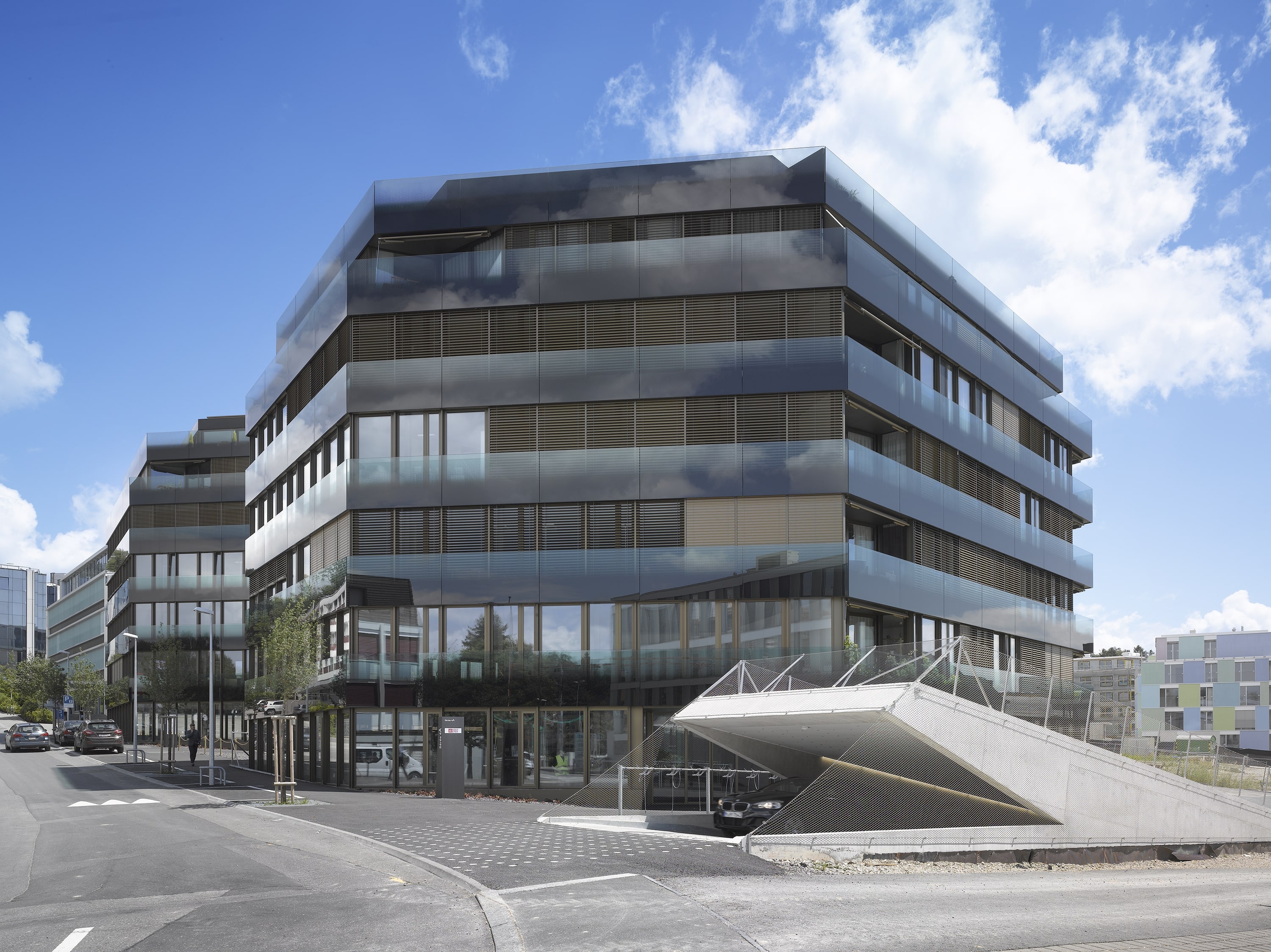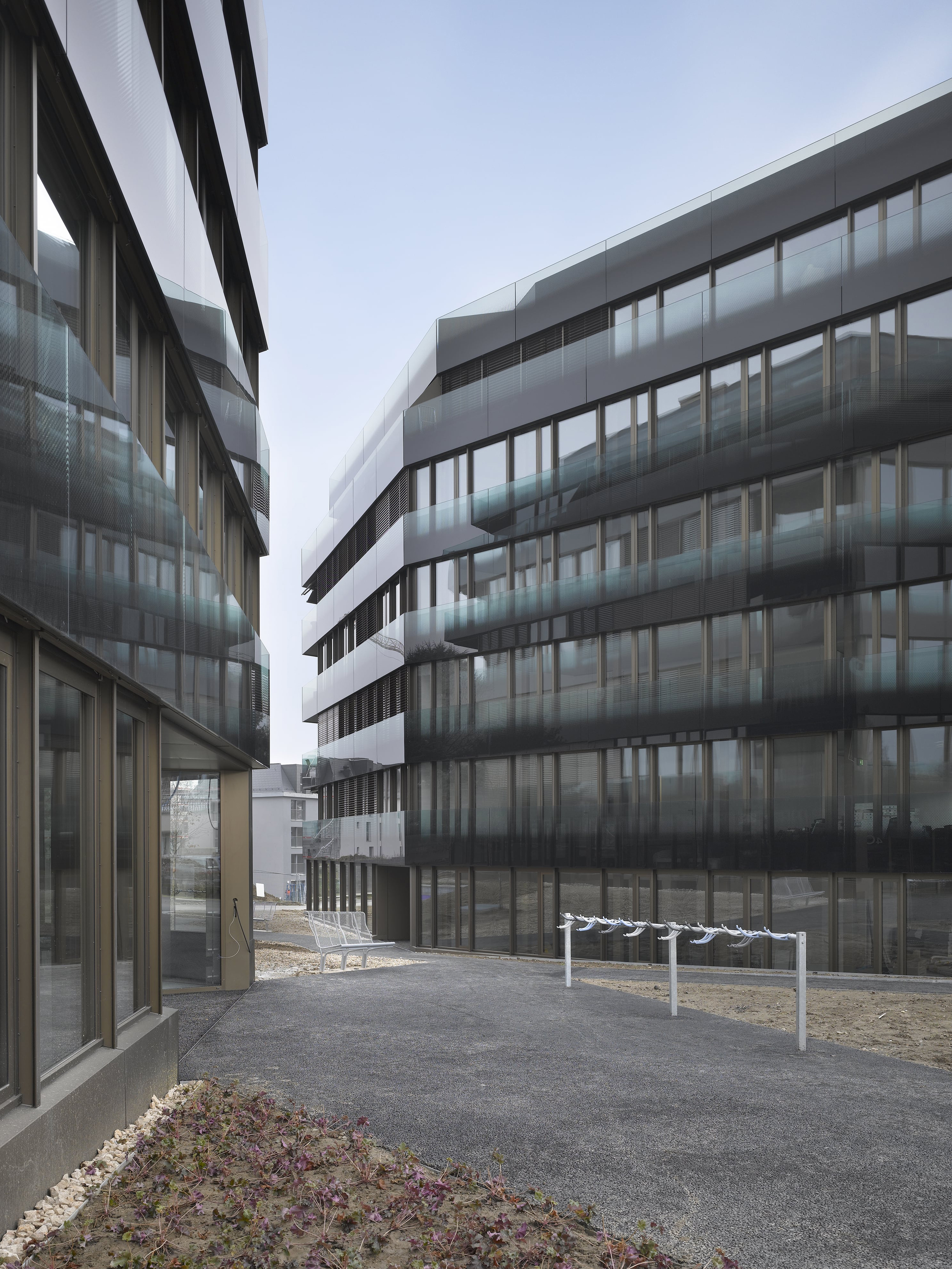 Les deux immeubles mixtes marquent l’entrée d’un nouveau quartier de logements, selon un masterplan initié par la ville de Lausanne. Le quartier des Fiches Nord s’inscrit dans une politique de création de logements aux abords des axes bien desservis en transports publics de la ville. Faisant la transition entre un ensemble d’immeubles tertiaires préexistant et le quartier de logements, les deux immeubles intègrent les deux affectations, tertiaire et habitat. La mixité, permettant d’exploiter au mieux les orientations du site, devient le thème morphologique et typologique du projet.
