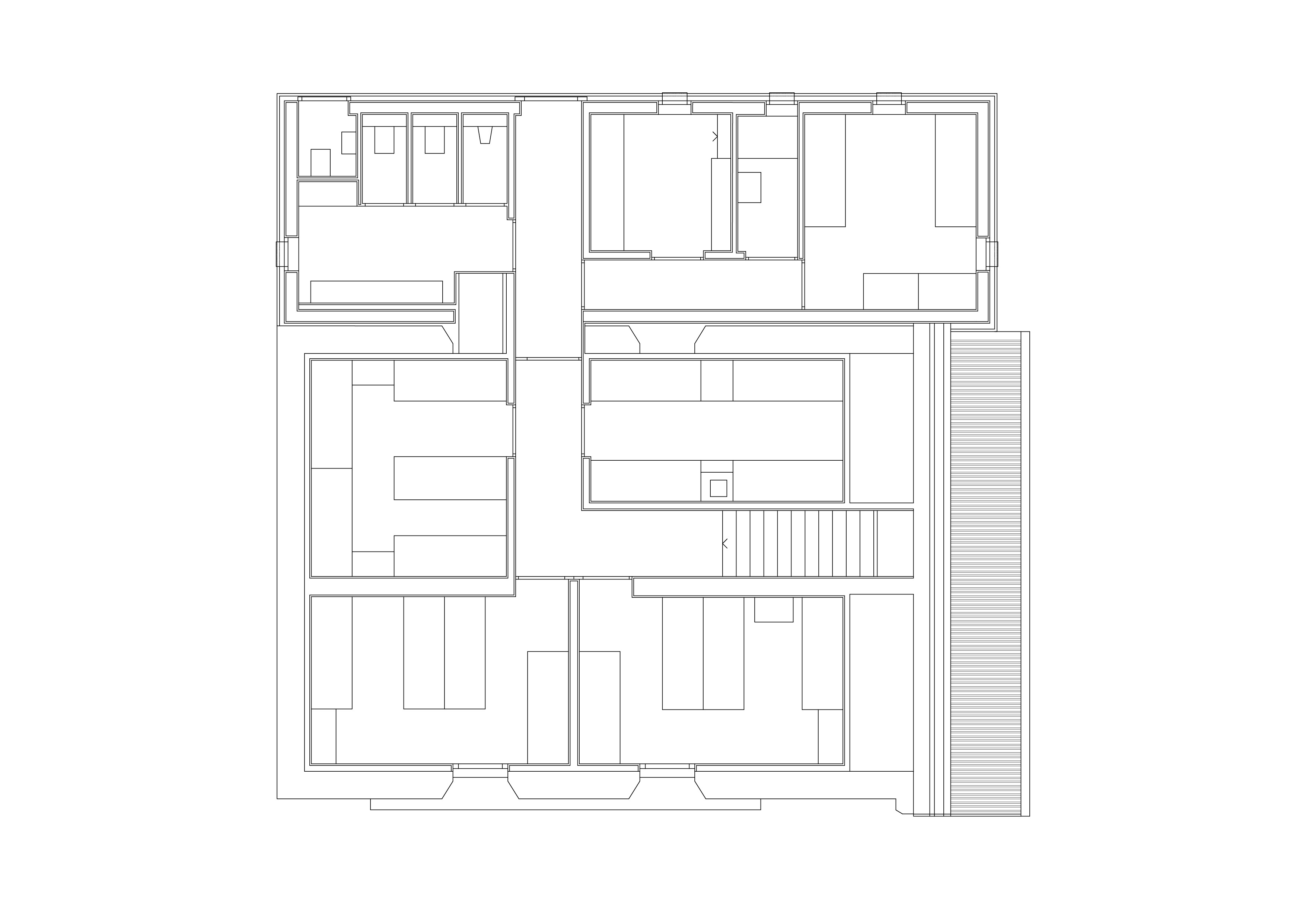 Afin de répondre à ces contraintes, tout en préservant le caractère originel de la cabane, l’intervention propose un réaménagement des espaces majeurs, réfectoire et dortoirs, dans l’ancienne cabane pour un maintien de sa substance, et une extension qui regroupe toutes les fonctionnalités qui lui faisaient défaut. L’agrandissement est accolé en façade nord, volume de trois niveaux en ossature et plancher bois, sorte de sac à dos compact et fonctionnel qui équipe le refuge d’économats, de réserve de combustibles, de sanitaires et d’un espace privatif pour les gardiens.